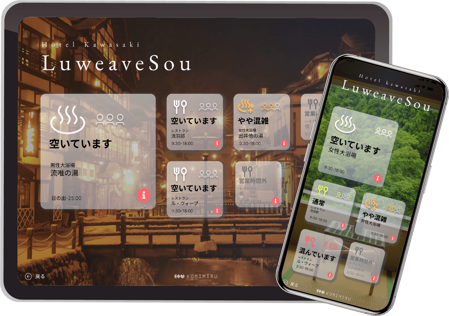 混雑状況や退室が自動でわかる 旅館・ホテルの混雑状況の可視化清掃業務の効率化システムコミミル